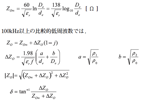 一般の伝送特性計算は、下左図のように理想的な同心円筒状で計算されています。実際には下右図のように内部導体に撚線を用いたり、外部導体に横巻や編組シールドを用いることが多いので、実行外径を算出します。