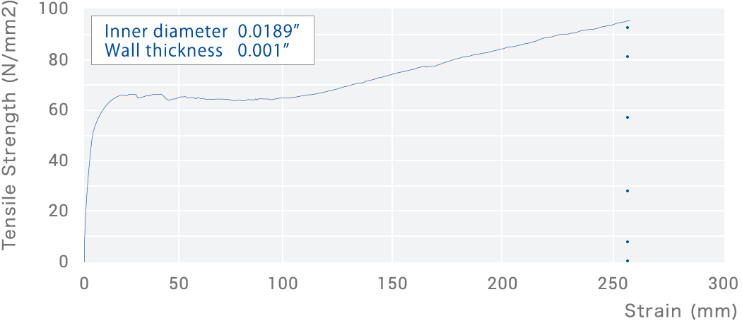 ●内径が0.012インチから0.130インチ(0.30mm〜3.3mm)、肉厚が0.00075インチから0.002インチ(19µm〜50µm)のカスタム対応が可能です。